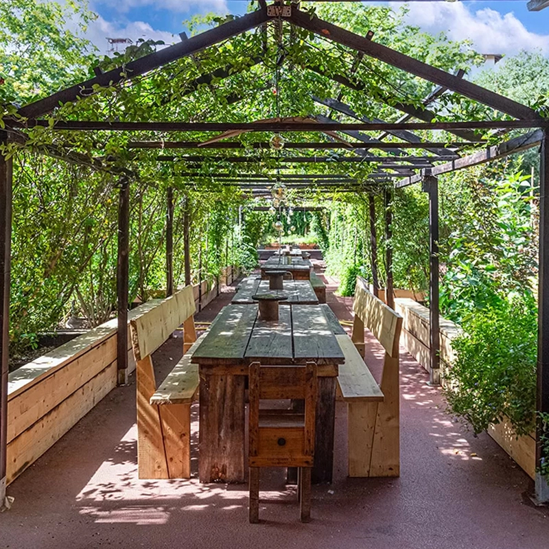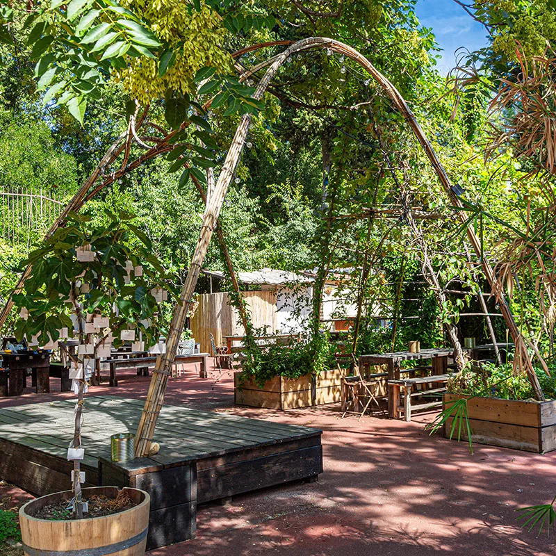 Il layout degli Orti Dipinti non è un’entità statica, ma un organismo vivo che riflette un approccio “nomade” all’abitare. Grazie alla visione dell’architetto Giacomo Salizzoni, ogni elemento è concepito per essere flessibile: dalle aiuole rialzate ai sistemi di seduta, tutto è modulare e riconfigurabile. Questa struttura permette di modellare lo spazio intorno alle necessità, garantendo layout fluidi che si adattano con naturalezza a diverse tipologie di eventi, mantenendo sempre un’atmosfera intima e di grande respiro.